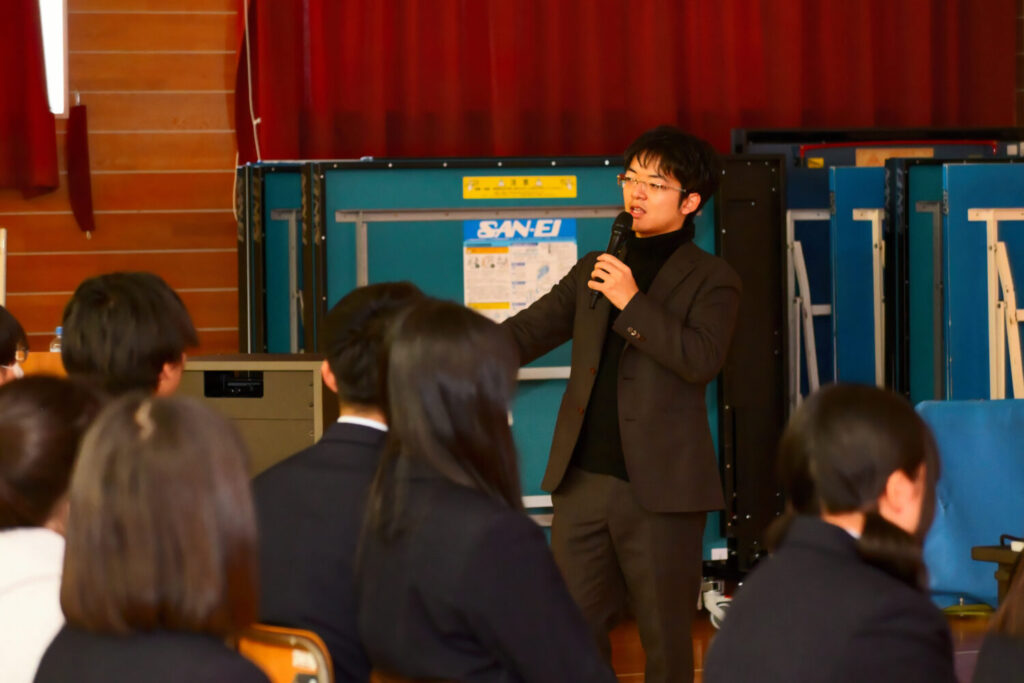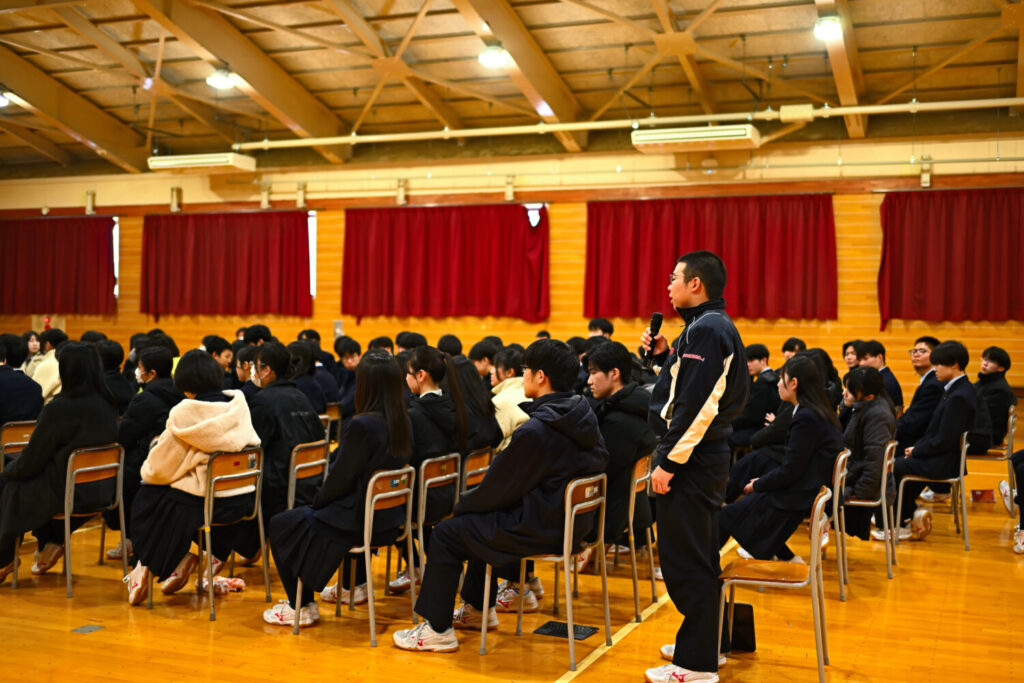 最後には「誰かの意見ではなく、自分の根拠で進路を選ぶことが自信に繋がる」と締めくくられました。生徒からは、「あんなにすごい先輩が、自分たちと同じ視線で話してくれて勇気が出た」といった前向きな感想が多く挙がりました。
