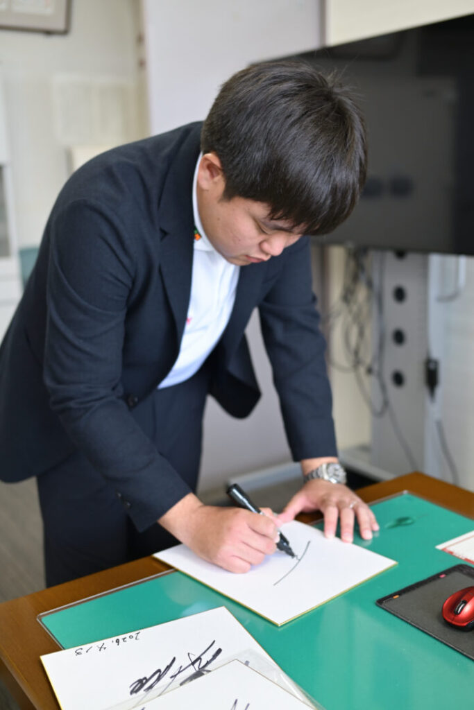 お忙しい中、母校へお立ち寄りいただきありがとうございました。米沢選手のさらなる飛躍を全力で応援しております!