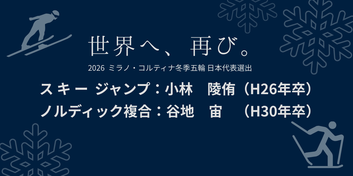2月6日から始まるミラノ・コルティナ五輪に、本校卒業生の小林陵侑選手、谷地宙選手が出場します!