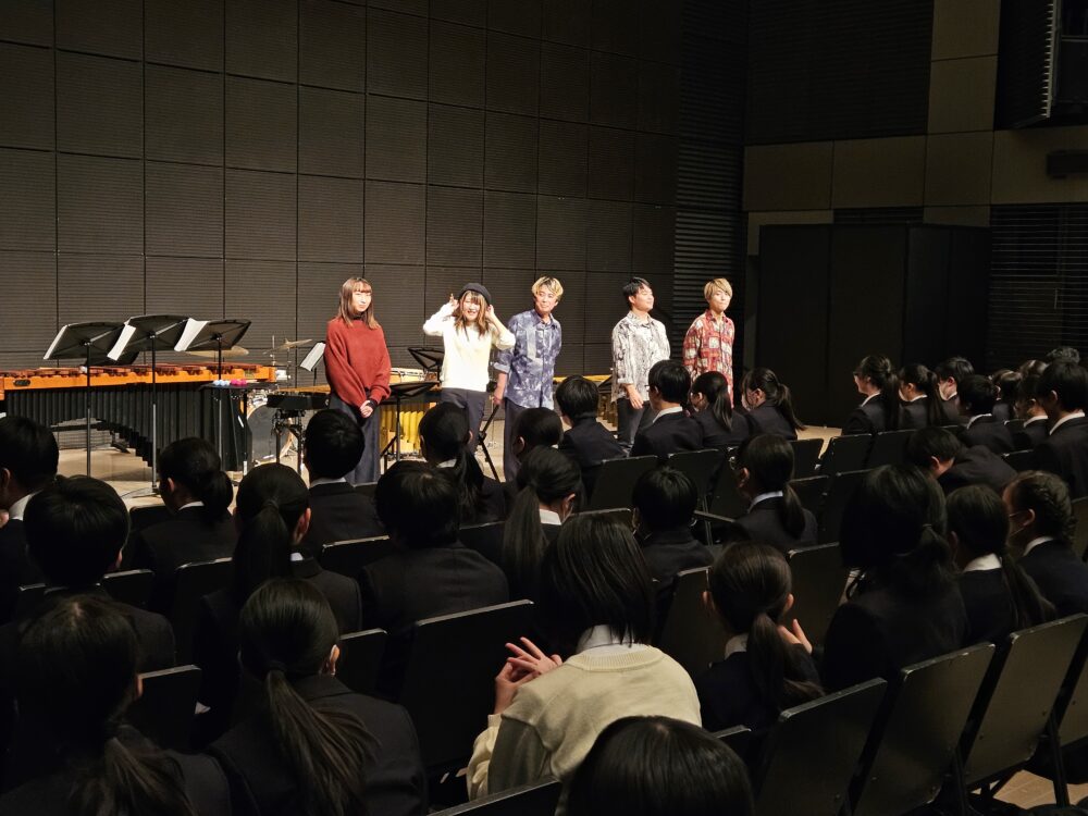 さらに、事前に生徒から募集したリクエスト曲や本校校歌も演奏されるサプライズもあり、会場は大いに盛り上がりました 。演奏後には生徒代表から感謝の言葉が述べられ 、芸術の秋にふさわしい豊かな時間を過ごすことができました。