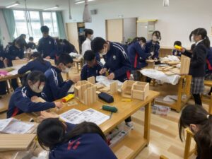 【授業風景】トントン、ギコギコ… 中学2年生が技術の授業でオリジナルの木工製作(棚づくり)に挑戦中です!